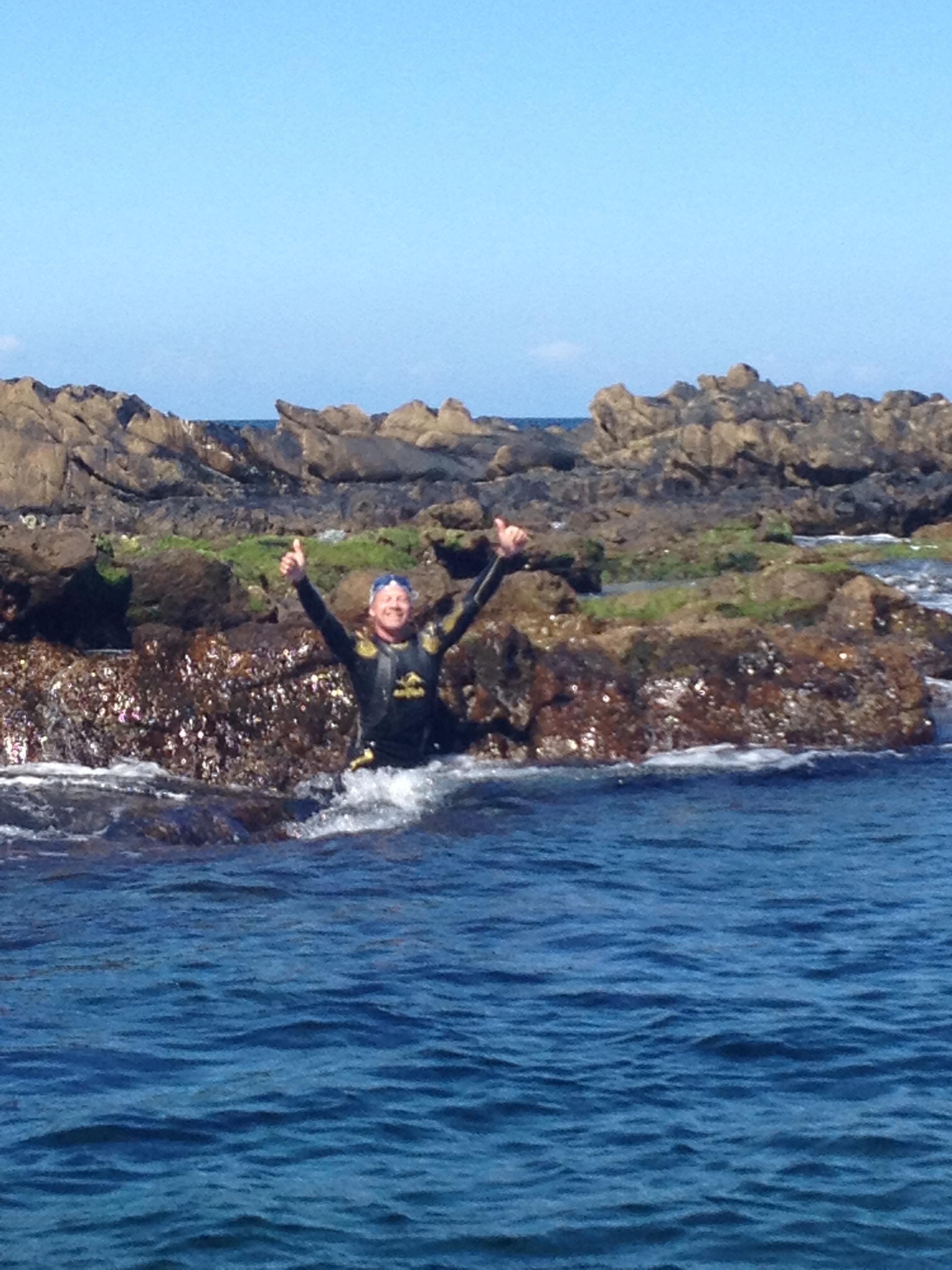 That last hour fighting through the notorious African coastal current was the most difficult, as it is for everyone crossing the Strait.  I was ready for it but tired.  At the last feeding, after having swum for 3 hours, the Zodiac captain was once again warmly comforting: