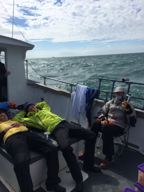 It was also pretty cold outside of the water. While I was on the boat, I was wearing a face mask, a technical shirt, wool sweater, ski jacket, warm underwear, sky pants, wool socks, Ugg boots (that Isabel and Emily had given me as a present), toe warmers, gloves, and hand warmers. Fortunately we had bought a couple of folding chairs to bring onboard.