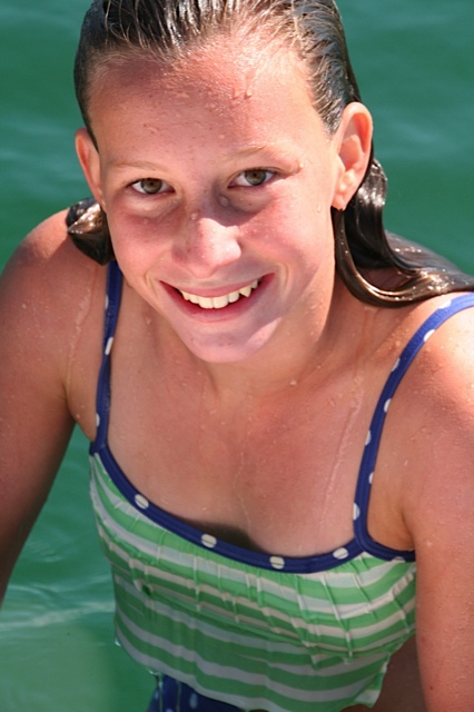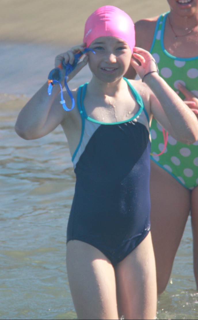 My name is Eve and I am 13 years old. I started swimming at a very young age, when I was a baby. I don’t swim on a team but I love to swim for fun. I basically started swimming open water when I was one because in the summer my family swims in the ocean a lot and and I swam with my parents holding me. When I was three I learned to swim by myself. I love to swim in open waters because you are so free and you can swim as far as you want. I also love to dive down to the ocean (or lagoon) floor and see what interesting stuff is down there. I think its good for me to swim because it excercises my body and it is also a very basic life skill that you use a lot. I would love to be able to swim more long distance and to be able to swim a little bit faster. I am so glad that I got to be a part of Swim4Good because it gives me a chance to swim in the ocean even in winter.